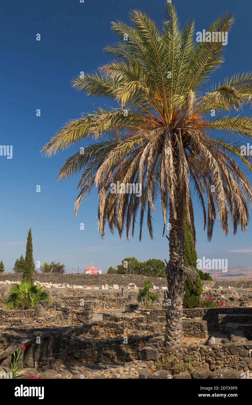 Date Palm Tree Phoenix Dactylifera And Ruins Of Ancient Capernaum Sea Of Galilee Region Israel Stock Photo Alamy
